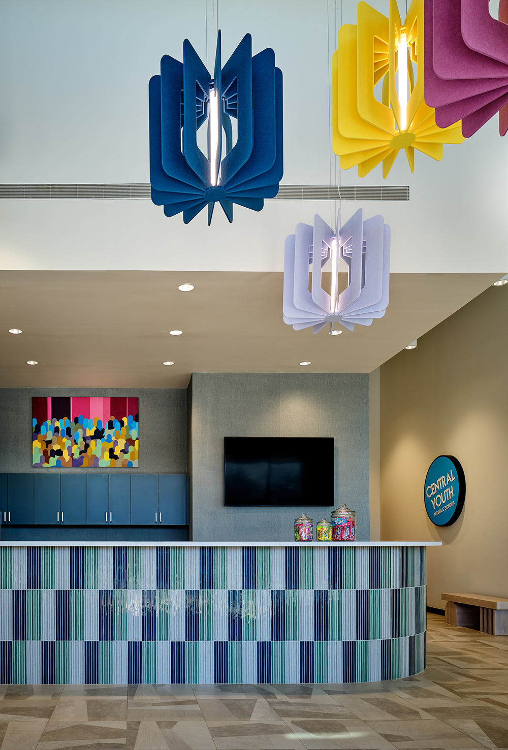Tough as nails (but prettier) with bold materials (look at that tile!) and flexible layouts allow the space to adapt to play or musical collaboration. More than a place to simply gather, it’s a space designed to inspire and support generations.